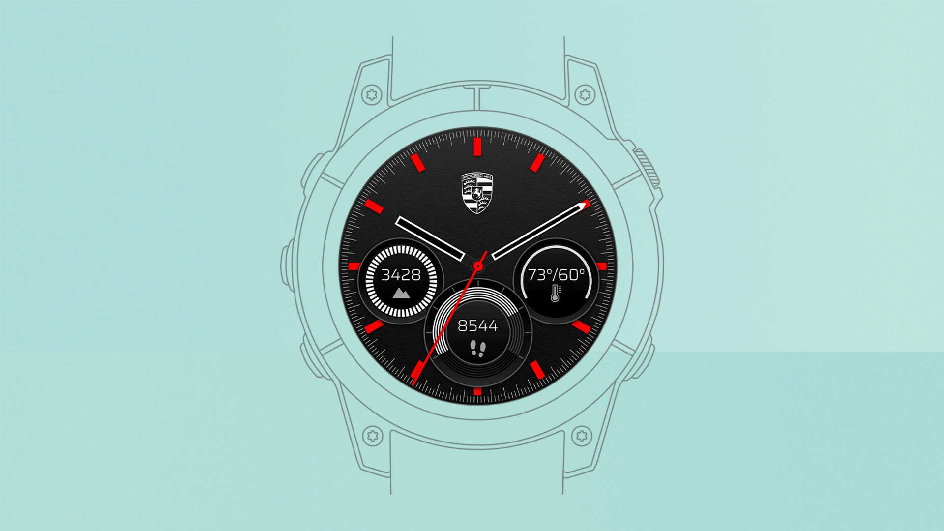 The Porsche Heritage face goes down the classic route, offering an analogue-style layout complete with the famous crest and red accents.