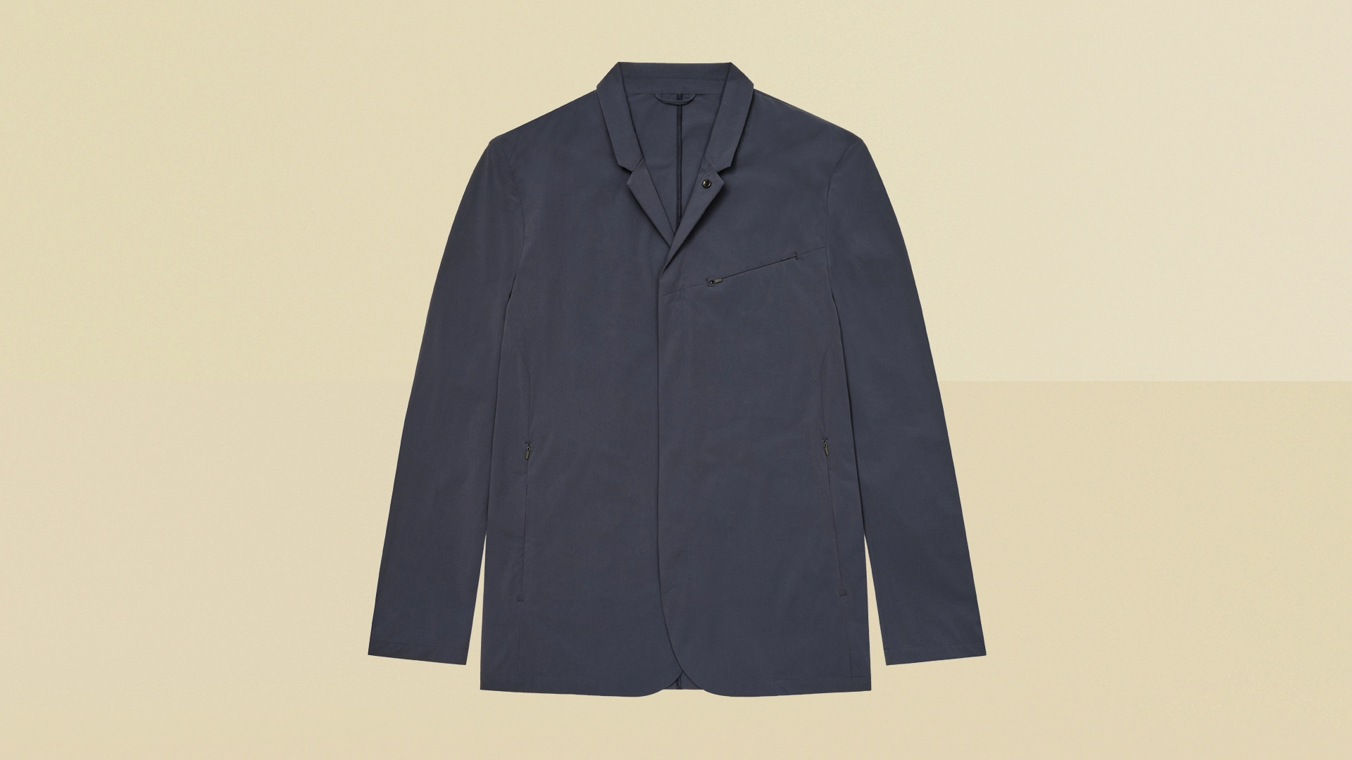 It’s water-repellent, quick-drying, and packed with stealthy details, including hidden zip pockets, bound internal seams, and a convertible collar that fastens invisibly behind the lapels.