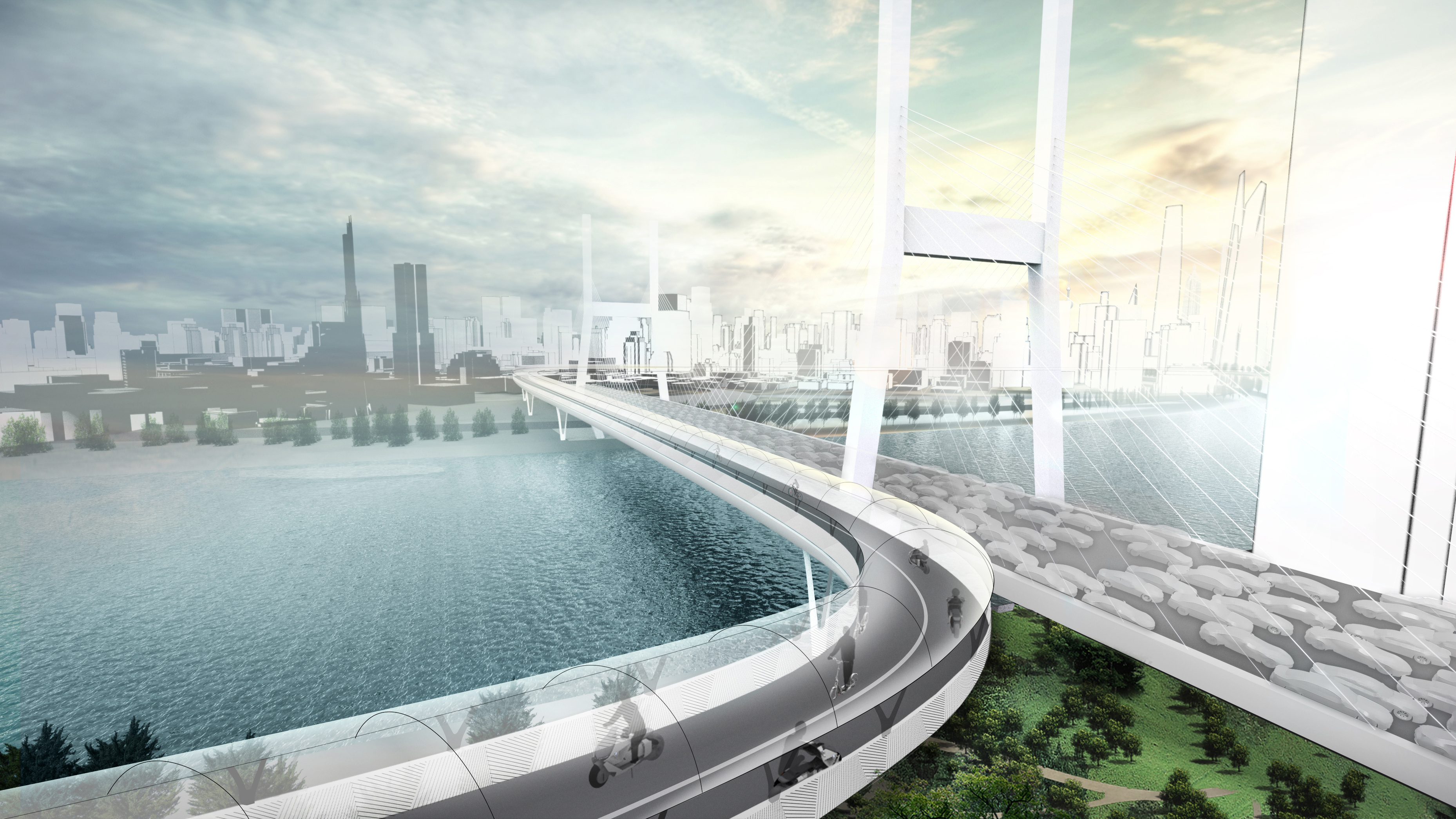 Workers could trundle stress-free to their offices or factories, while tourists could use the new environmentally-friendly super-highway to take in the sights at their leisure.