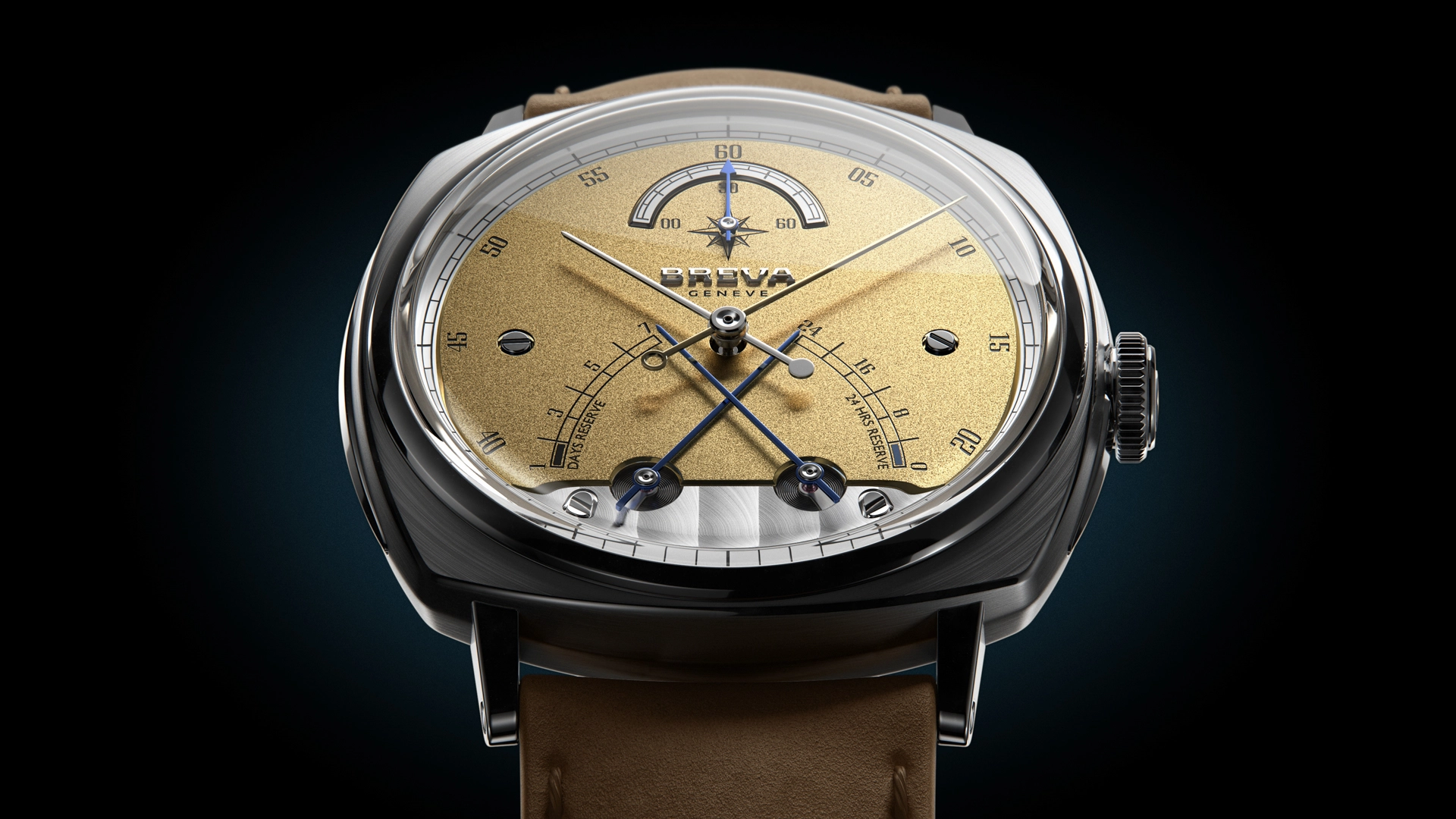 Breva says how the unusual dial arrangement “transforms the traditional power reserve into a refined instrument, inspired by the precision tools of part explorers.