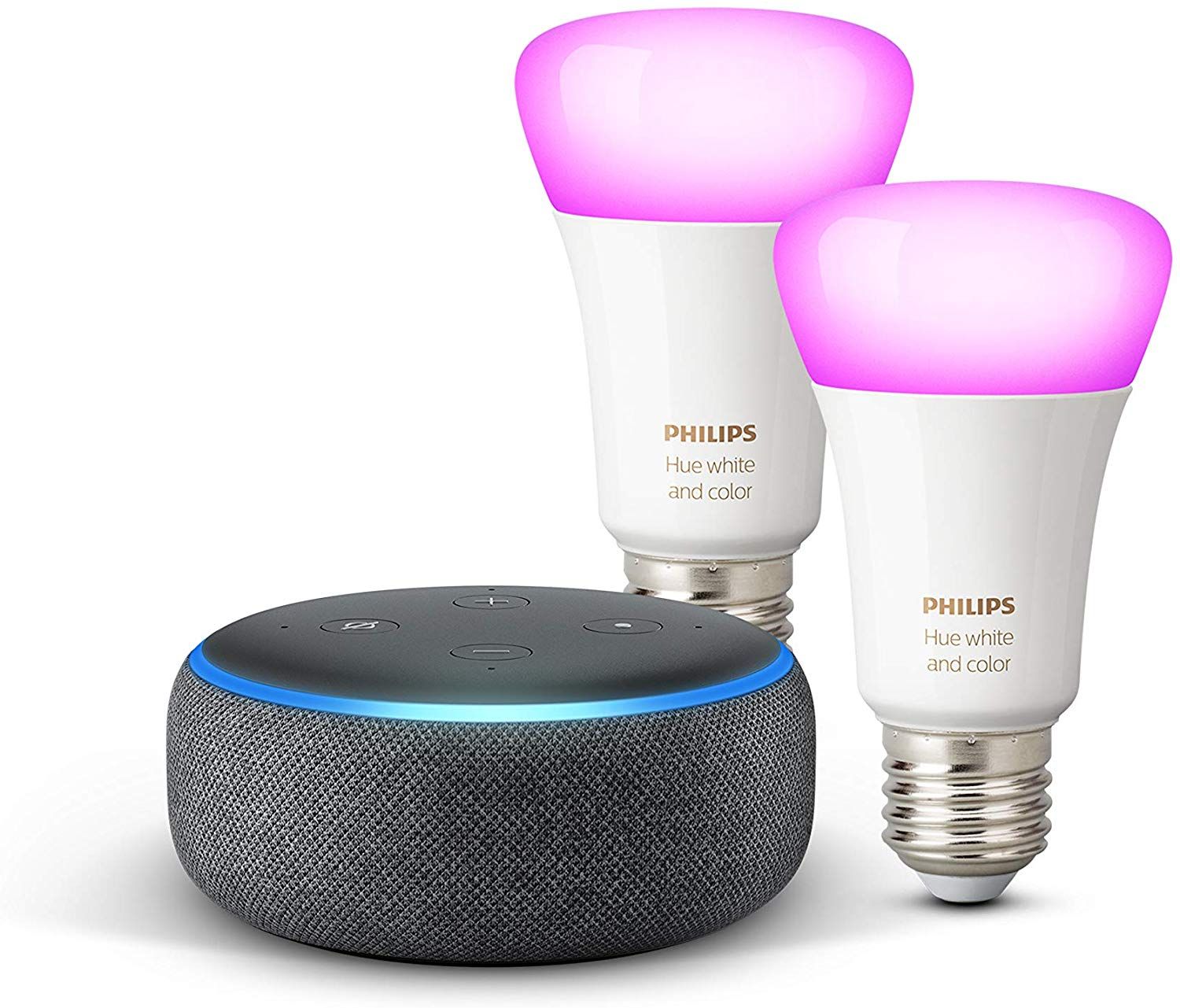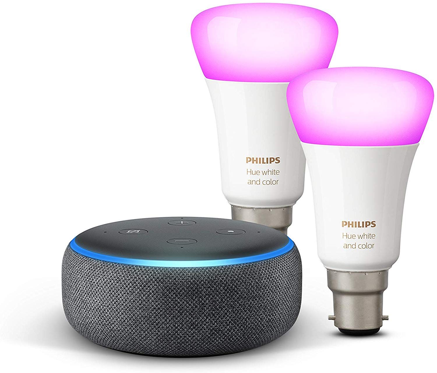 If you're looking for bayonet fitting bulbs and aren't fussed about colour changing capabilities, but do like the idea of smart, temperature changing white lights that can be commanded by your voice, then this version of the bundle deal is for you. You get the latest Amazon Echo Dot smart speaker as well as a twin pack of white smart bulbs. A 57% Cyber Monday price cut means this is retailing for just £31.99 right now with free delivery.View Deal