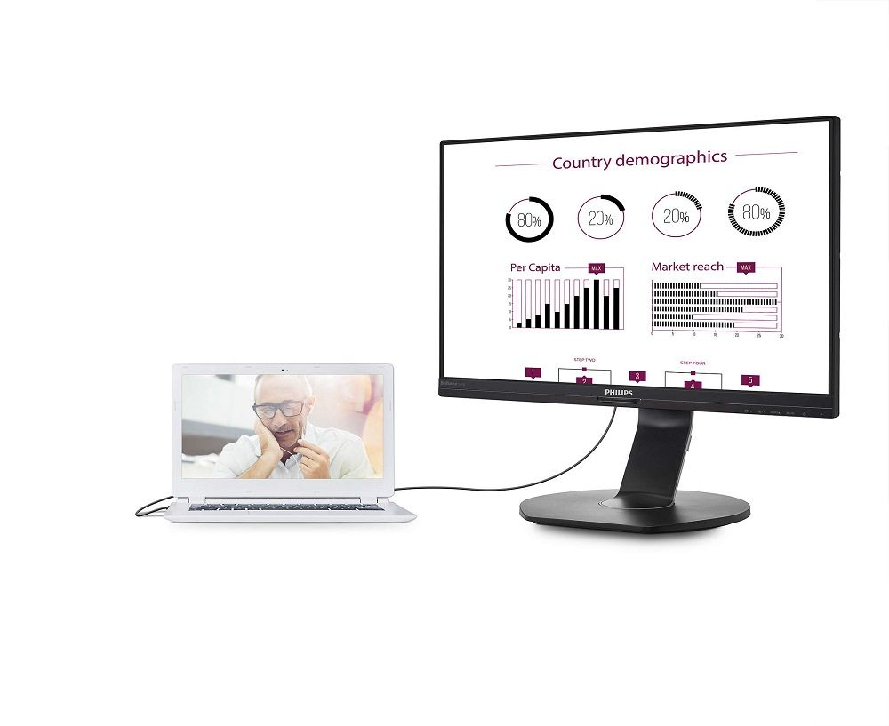 Especially suitable for ultra-book type devices with limited connectivity, flex work places, and dynamic users, the Philips 241B7QUPEB transmits video, audio, and connects to the Internet or Intranet – all through a single SuperSpeed USB cable. The Full HD display connects all your accessories through a USB hub with three USB 3.0 ports, including a full-sized keyboard, mouse, external HDD, camera and USB drive can be connected to the display’s USB hub.
