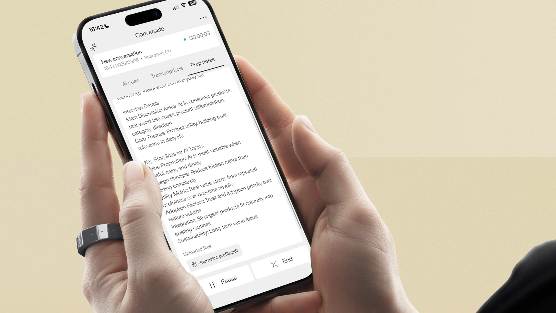 There’s also support for switching between live captions, suggestions and prep notes using gestures or a companion smart ring, reinforcing the idea that this is meant to stay out of the way.